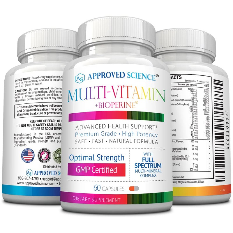 Approved Science Multi-Vitamin - with Full-Spectrum B-Vitamins, Green Tea, Lutein, Lycopene, Zeaxanthin, BioPerine - 60 Capsules - 3 Month Supply