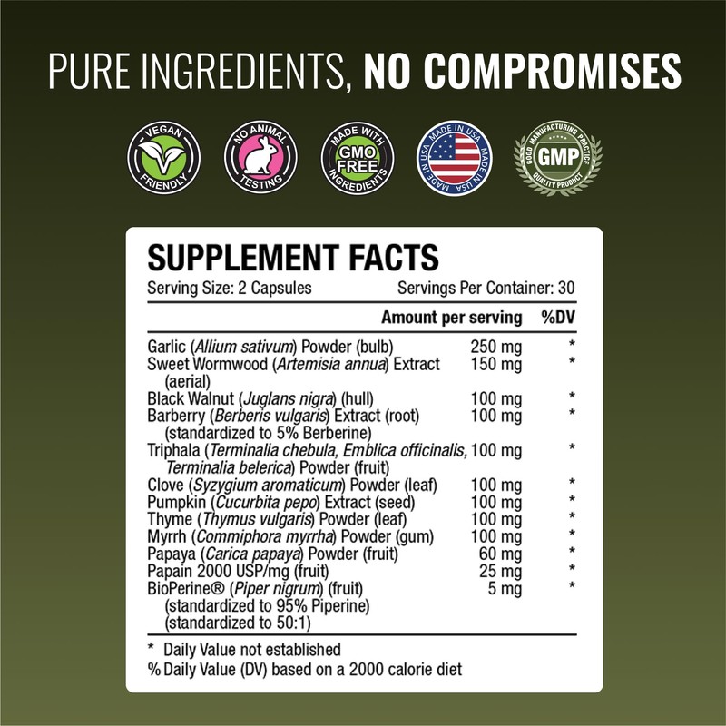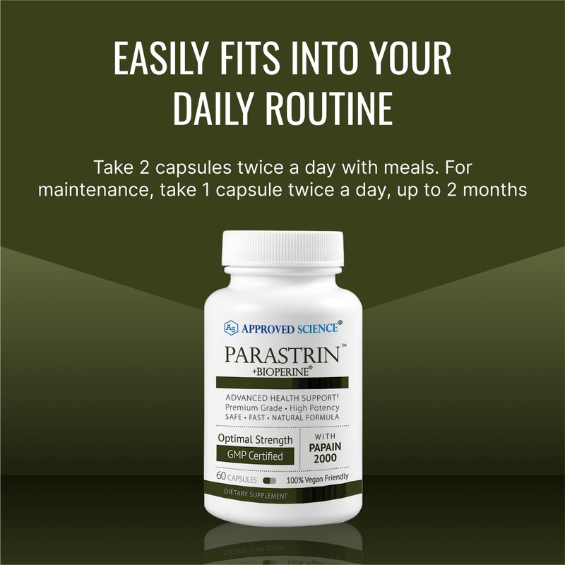 Approved Science Parastrin - 120 Capsules - Cleanse and Improve Gut Health - Black Walnut, Garlic Bulb, Papain 2000, BioPerine - Vegan