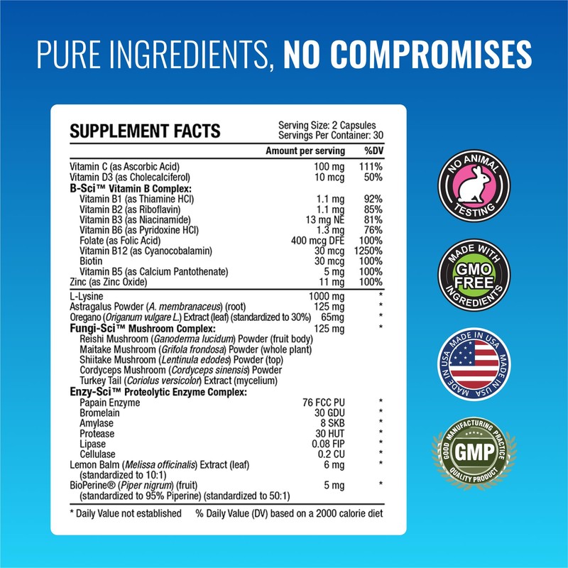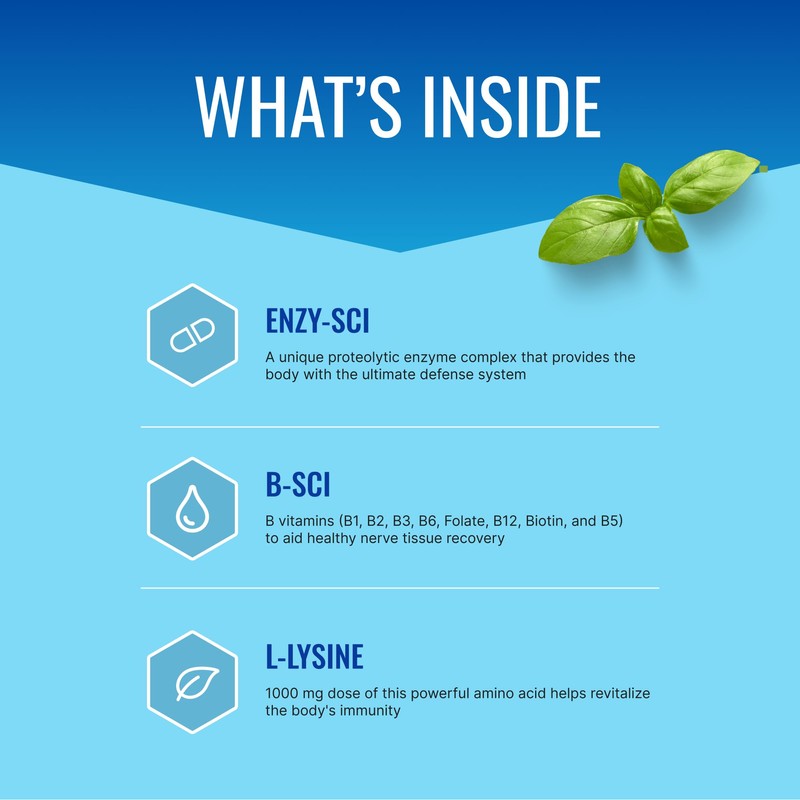 - Key Ingredients - L-Lysine, Mushroom Complex, Proteolytic Enzyme Complex.
