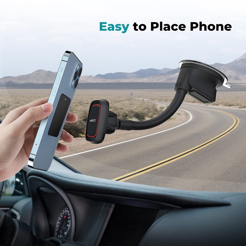 APPS2Car Magnetic Phone Holder for Car, Dashboard Windshield Phone Holder Mount with Flexible Arm & Built-in Strong Magnets, Suction Cup Phone Holder for Car Compatible with All Smartphones