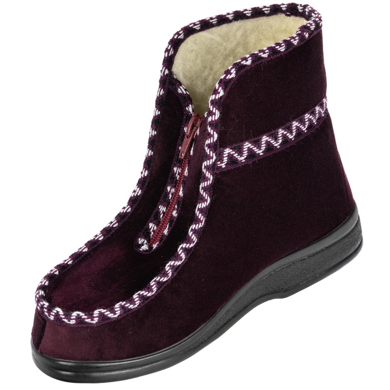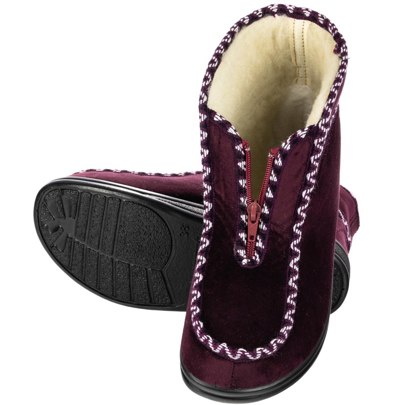APREGGIO Women's Slippers - Warm, Comfortable with Zip, Wool Felt & Wool Filling, for Indoor and Outdoor Use, Winter Slippers, red