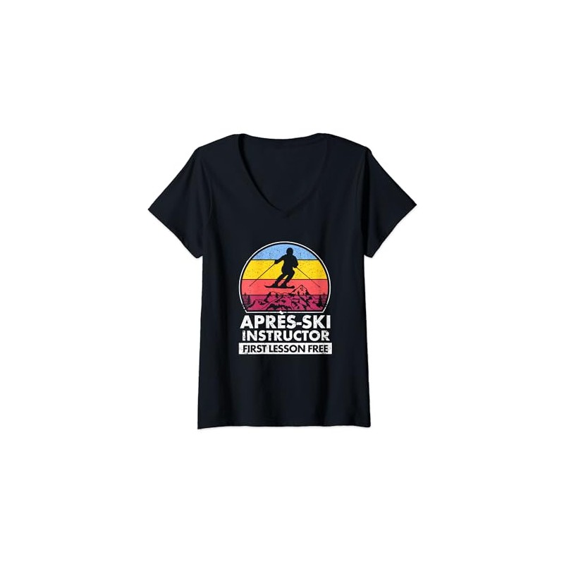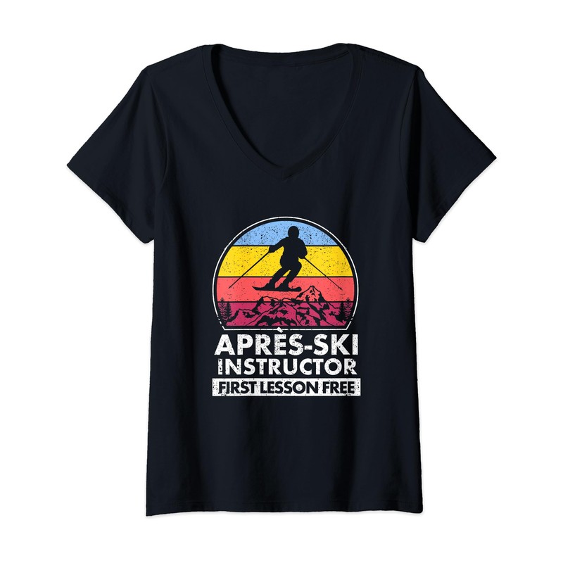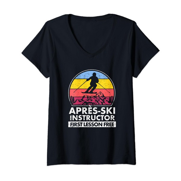 Apres Ski Instructor First Lesson Is Free Skiing Trip Skier V-Neck T-Shirt