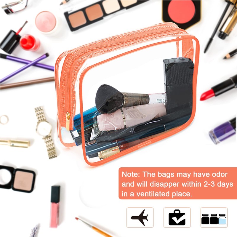 - ✈TSA APPROVED and DURABLE✈: TSA approved clear travel bag strictly follow 3-1-1 regulations, you won't have to worry pass through airport security. All makeup bags made of transparent PVC material, BPA free. The Strong thickness makes the bag more durable and easy to clean, it is reusable.