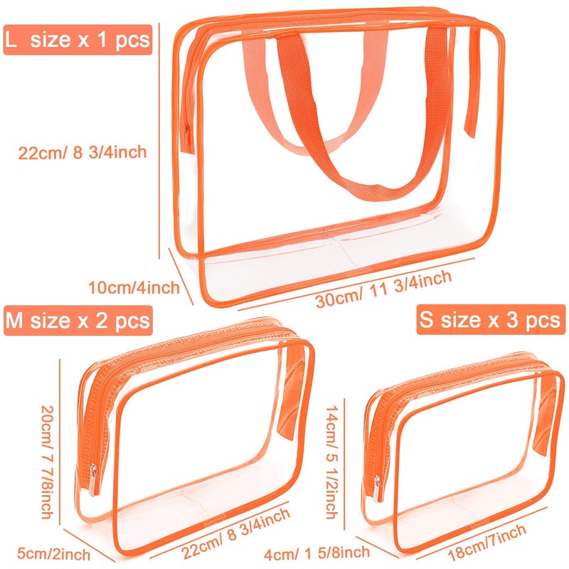 APREUTY Clear Makeup Bags, TSA Approved 6 Pcs Cosmetic Makeup Bags Set Clear PVC with Zipper Handle Portable Travel Luggage Pouch Airport Airline Vacation Organization (Orange)
