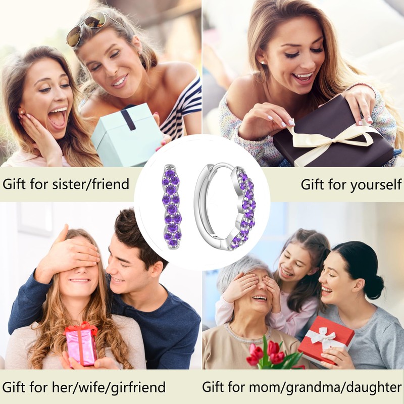 Aprila Women Earrings 925 Sterling Silver Hoop Earrings with 2 Row 3A Cubic Zirconia February Birthstone Amethyst Color Jewelry