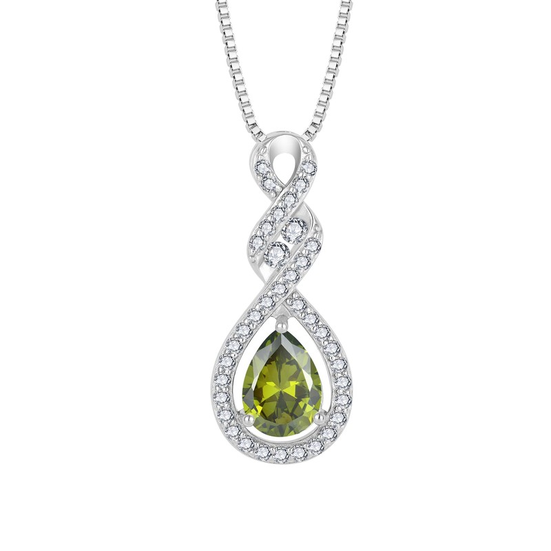 Aprila Women Infinity Necklace 925 Sterling Silver Twist Teardrop Pendant with Chain 5A Cubic Zirconia August Birthstone Peridot Color Jewelry for Her