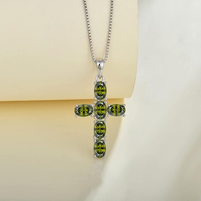 Aprila Women Necklace 925 Sterling Silver Cross Pendant Necklace with Cubic Zirconia August Birthstone Peridot Color Jewelry