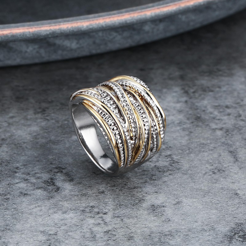 - 【DESIGN】Crossover, two-tone gold and antique design makes sure our ring never out of fashion, Inter Unisex fashion for womens and men.