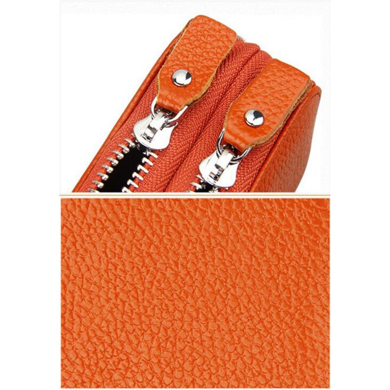 AprinCtempsD RFID Blocking Women's Credit Card Holder Genuine Leather Ladies Small Coin Purse Men's Mini Card Wallet with Double Zipper (Yellow)
