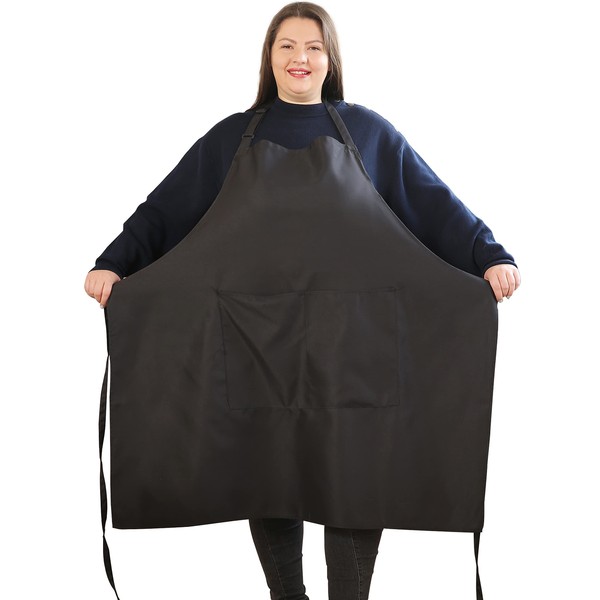 Plus Size Aprons for Women with Pockets Durable Long Adjustable Bib Kitchen Cooking Black