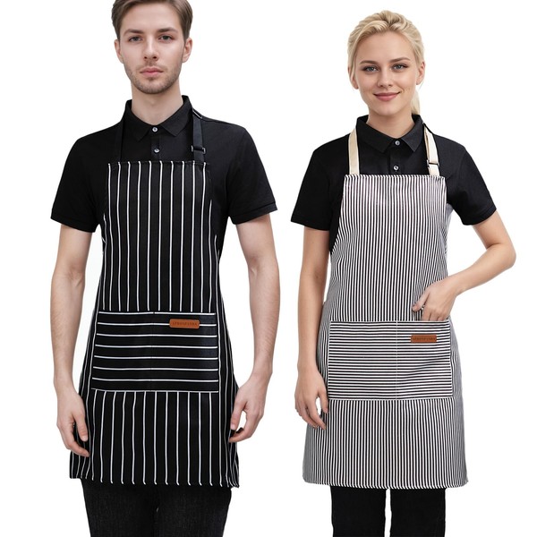 2-Pack Aprons for Women Men with Pockets, Adjustable Bib Kitchen Apron, Chef Aprons for Cooking Baking BBQ