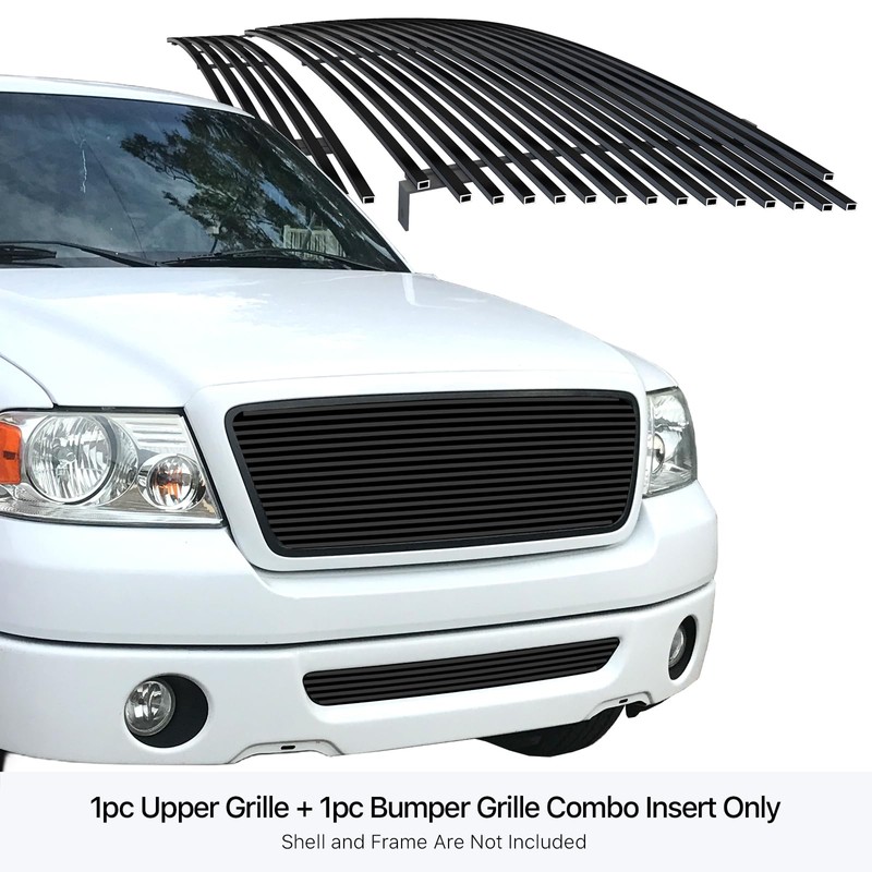 APS Compatible with Ford F-150 2006-2008 Black Horizontal Billet Front Grille Grill Insert Combo F87925H