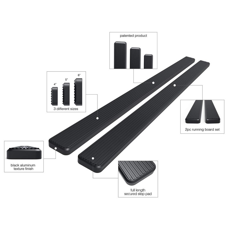 - FULL COVERAGE STEP PAD - 5" wide corrugated rubber step pad covers the entire running board, providing a secure, slip-proof, comfortable step for the whole family