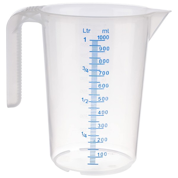 APS Measuring Jug 1 Litre, Diameter 12 x Height 16.5 cm, Plastic Cup with Embossed Scale on the Outside, Open Handle, L/ml Divisions, Dishwasher Safe