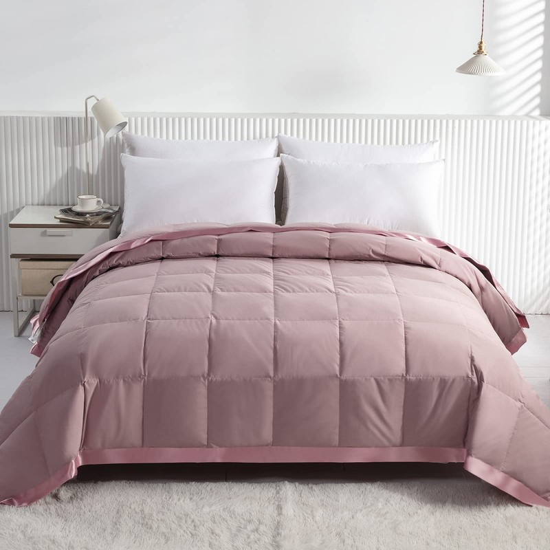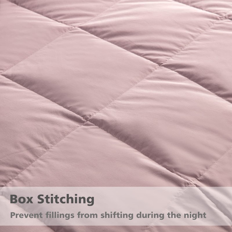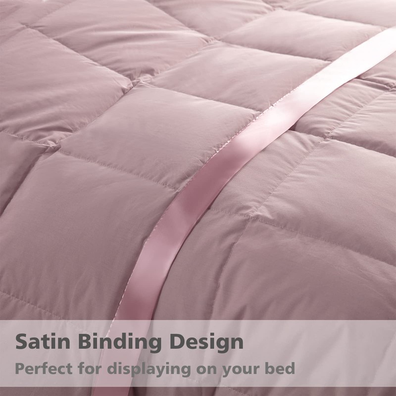 - GRASP THE DETAILS - We strictly selected down fibers and feather fibers fillings and made this summer cooling comforter carefully. The special design of box stitch keeps the fillings in place and this soft down feather fibers blanket with satin trim on the edges has a beautiful looking that can decorate your room better.