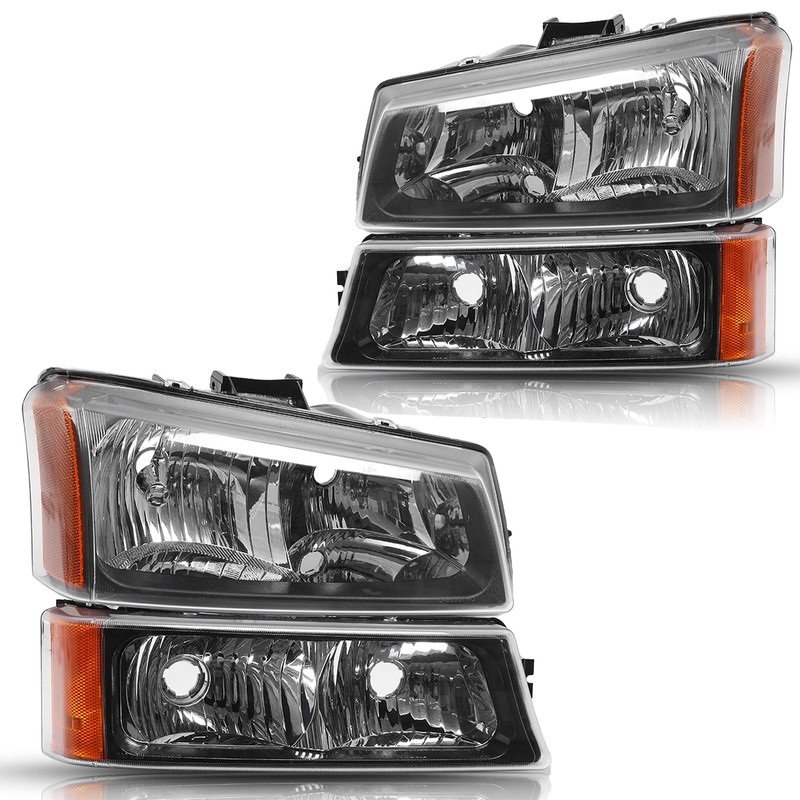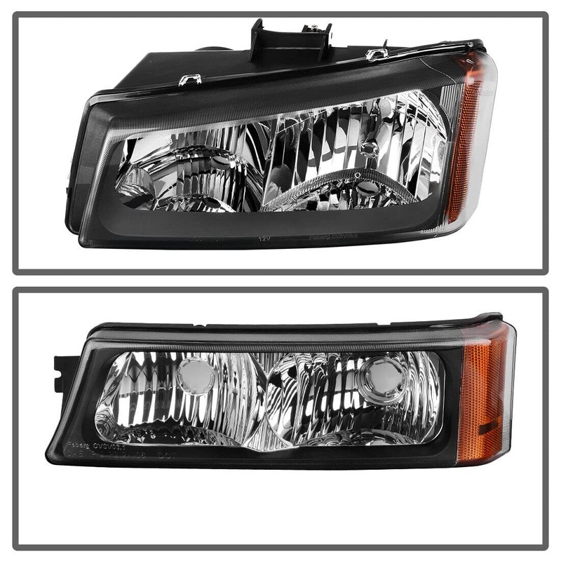 APSVE Headlight Assembly For 2003 2004 2005 2006 Chevy Silverado Avalanche 1500 2500 3500, For 2007 Chevy Silverado Classic Black Housing Amber Reflector Clear Lens Driver and Passenger Side Headlamp