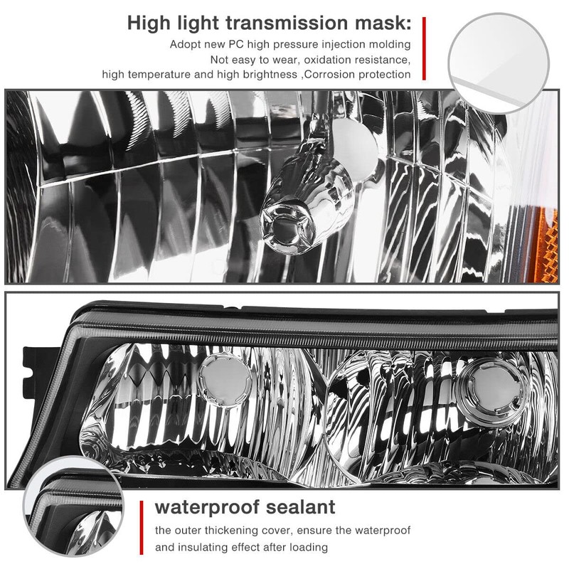 - 【 Package Contents】 1 X Pair of Headlights; 1 x Pair of Bumper Lights.No Instruction Included; Bulb Type: 9005/High, 9006/Low, 3157A /Turin Signal, Bulb not include