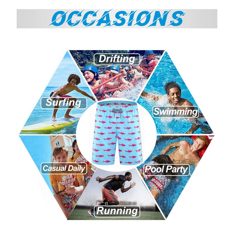 - OCCASSIONS---The men's swim trunks are suitable for all kinds of water recreation occasions. From swimming and surfing to beach volleyball, you'll always be at ease on your beach vacation.
