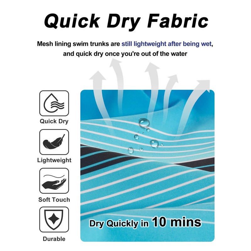 - Quick Dry Fabric: These mens swim trunks are made of premium quick dry fabric, comfortable and breathable swim shorts are lightweight, comfort, excellent ability of water repellent, soft and UPF 50+, it will quick dry once you're out of the swimming pool or surf