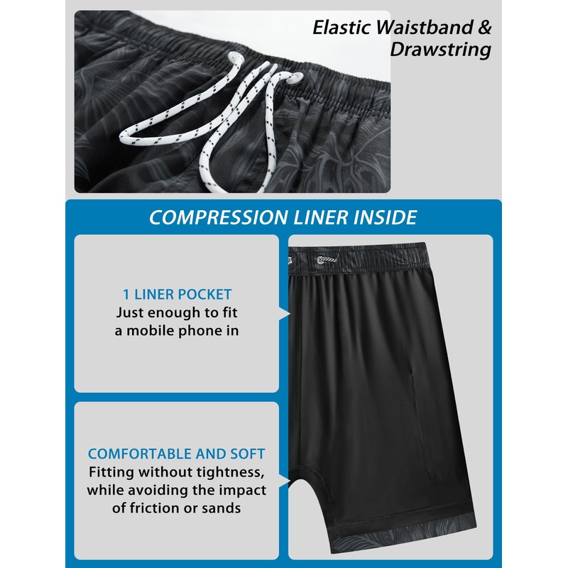 - Swim trunks and compression liner 2 in 1 Design: Crafted for comfort and softness, these trunks provide a snug fit without constriction, shielding sensitive areas from chafing and sand, ideal for aquatic environments like beaches and pools
