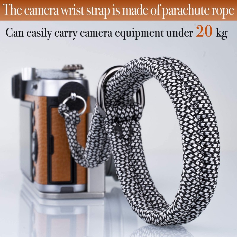 • HIGH-STRENGTH MATERIALS: The features of Parachute Cord Camera Strap are high test strength, high tenacity, durable, comfortable and anti-slip.The camera wrist strap can hold up to 45 pounds and is completely safe for the camera.