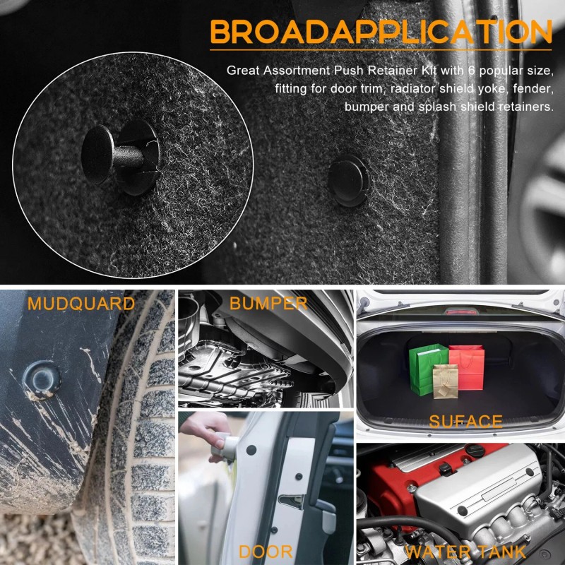 - Need not worry about lost or damaged body fasteners.All the necessary retainers for exact replacement of old and broken retainers.