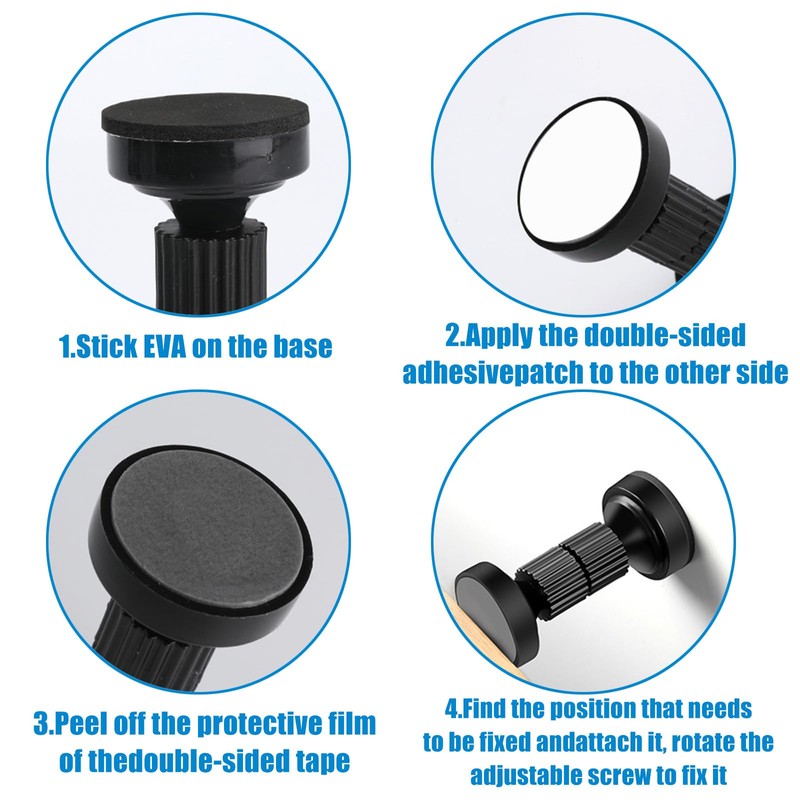 - Easy Installation: The bed stoppers side of the base with double-sided tape is glued to the head of the bed, and then the side of the EVA pad is against and for protecting the wall. Bed frame support no complicated operation, easy to fix furniture. Simple to adjust and install the headboard bumper for wall.