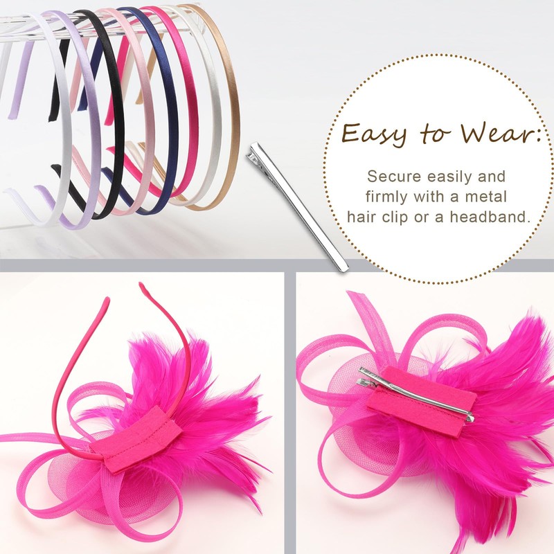 - Various Colors to Choose - AQOKKA sassy fascinators are available in a variety of colors, so you can choose the one you prefer. Available colors: Black, Gold, White, Pink, Champagne, Fuschia, Purple, Navy and so on. Note About Colors: The colors of the items shown in the photos may look a little different on your screen.