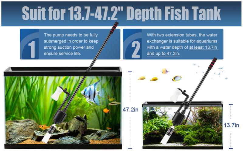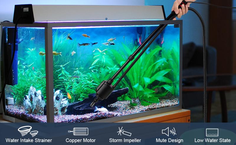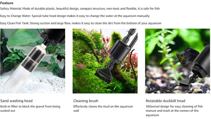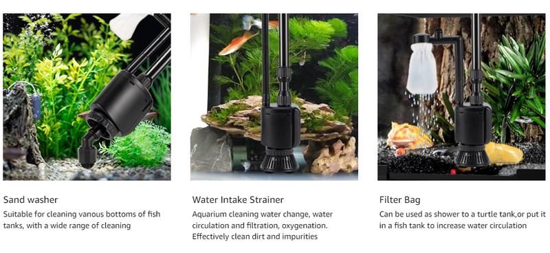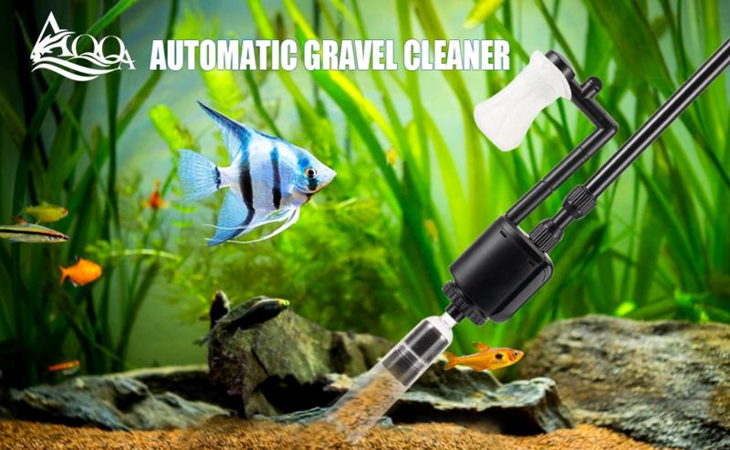 AQQA Aquarium Gravel Cleaner, 6-in-1 Electric Fish Tanks Gravel Vacuum Cleaner Set for Remove Dirt, Change Water, Wash Sand, Water Shower, Water Circulation (20W, 320GPH)