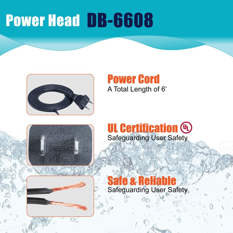 - 6 ft (1.8m) Non-Polarized Plug (US) UL Certified (inclusive of the cable inside the motor housing)