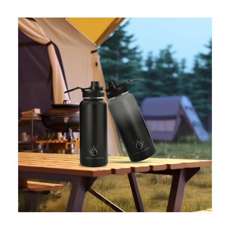 Aqua Essences Vacuum Insulated Stainless Steel Water Bottle 32 oz With Wide Mouth And Bounce Lid BPA Free 24 Hours Cold And 12 Hours Hot (Ombre: Grey/Black)