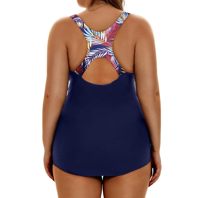 Aqua Eve - Traje de baño deportivo de una pieza para mujer, con control de abdomen y adelgazamiento, Hojas de colores azul marino, 22 Plus