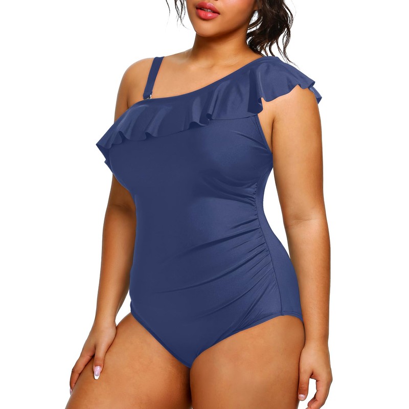 - Traje de baño de una pieza de talla grande: trajes de baño asimétricos de un hombro con volantes y diseño de control de abdomen que oculta perfectamente tus imperfecciones.