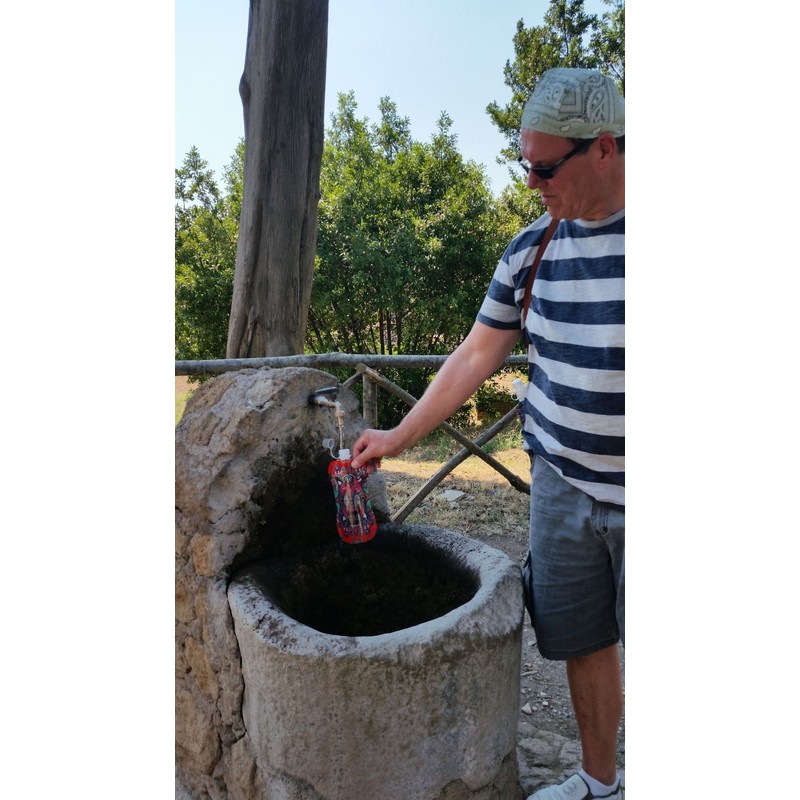 Aqua-licious are durable reusable water bottles. When empty, you can fold them up and take them comfortably in your bag. With the practical carabiner hook, you can easily hang the bag on trousers, sports bag or backpack. Aqua-licious is ideal for travel, sports, school or festival. Summer tip: First put in the freezer and take a bath.