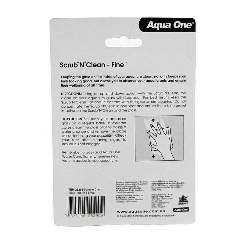 This is a Scrub 'N' Clean Fine Algae Pad for Aquarium & Fish Tank Clean by Aqua One. Aqua One Scrub & Clean Fine Algae Pad will keep your aquarium walls clean and looking its best.