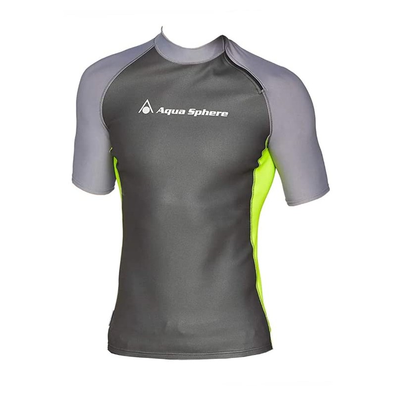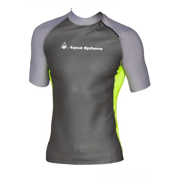 Aqua Sphere Men's Aqua Skin Short Sleeve Top - Black/Yellow/Grey, Small