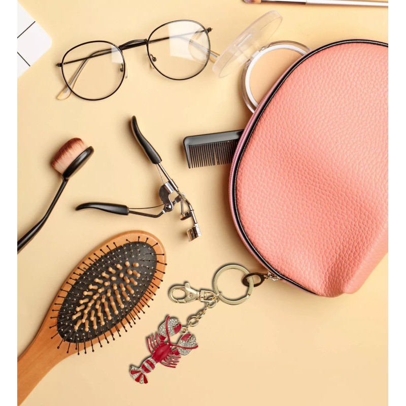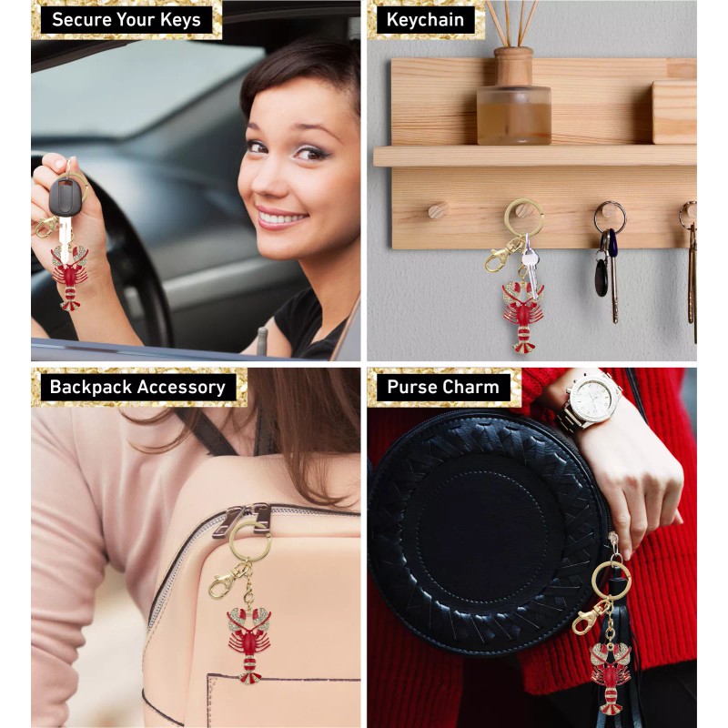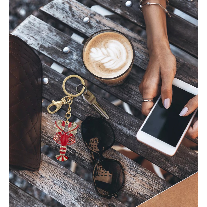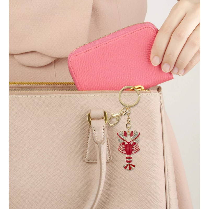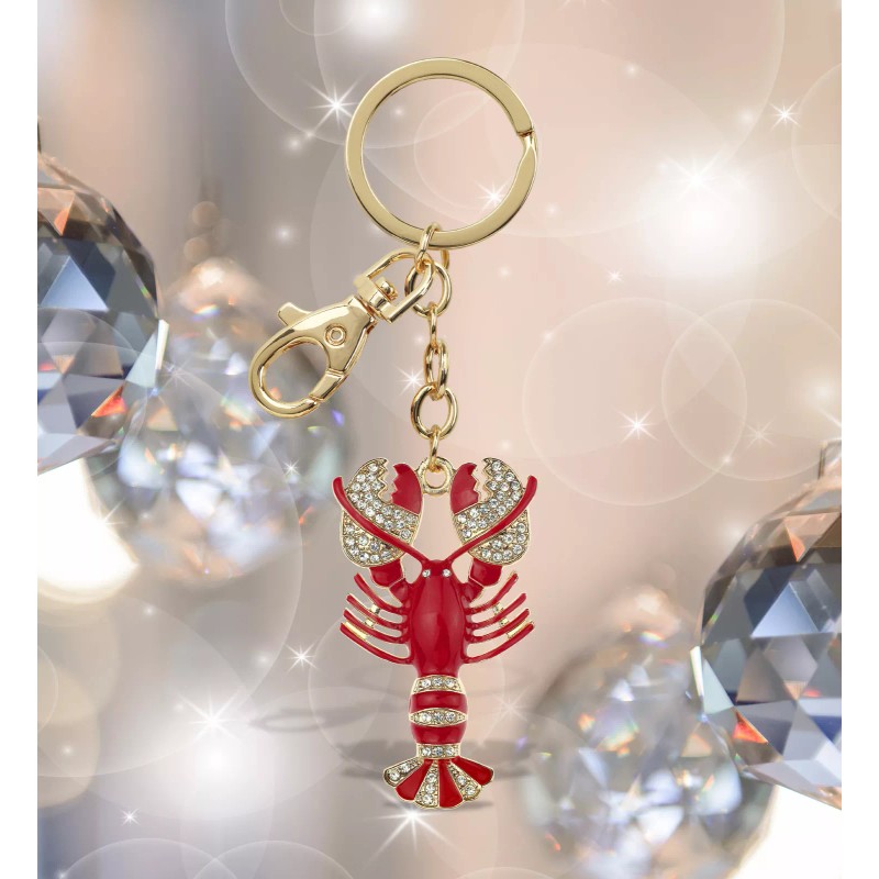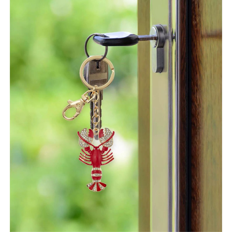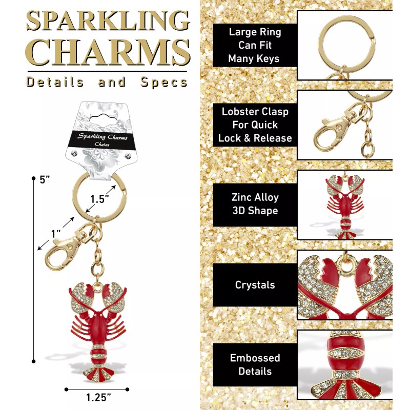 Aqua79 Red Lobster Gold Keychain - Silver Sparkling Rhinestone Charm with Clasp