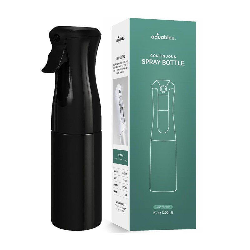 Aquableu Spray Bottle for Hair, Fabric Care, Cleaning & More – Refillable and Reusable Fine Continuous Mist Bottle Spray for Multi-Purpose Use, No Leaks, Comfortable Grip – (1 Black, 200ml)