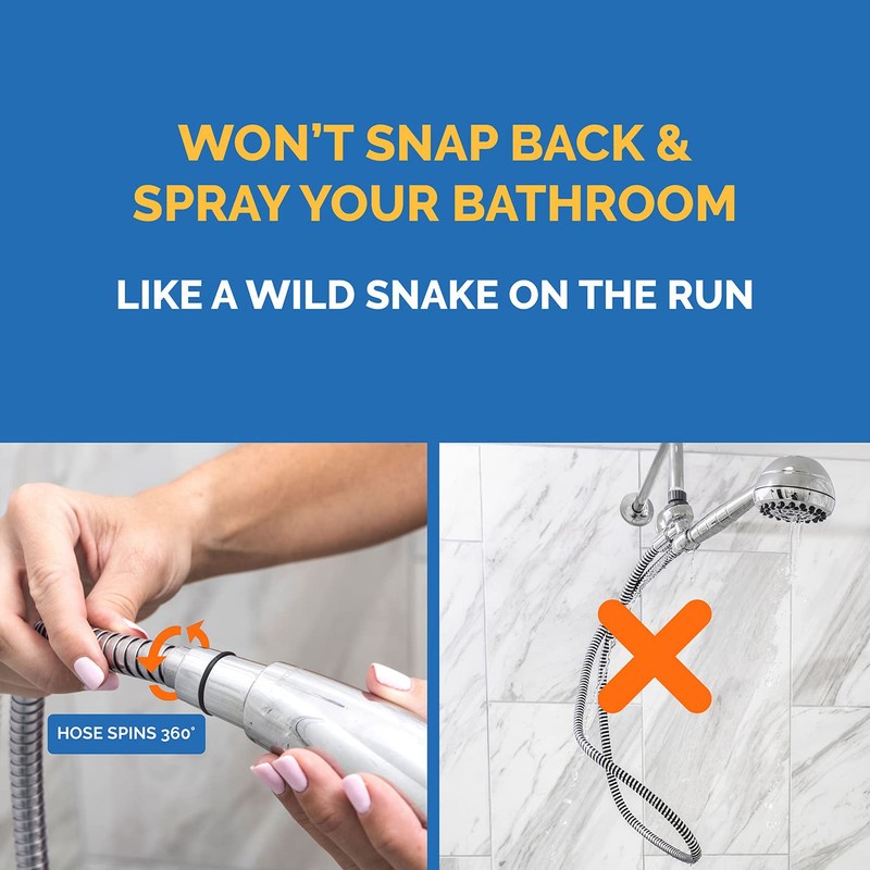 - 360* Rotation, Easiest Installation - Won’t Tangle, Kink or Break: Tub slip and falls are no joke, so we designed a shower hose for handheld showers that won’t “clothesline” you onto the tub floor. Unique dual-bolt ends combine with smooth-gliding EPDM nylon hose armor, so you can install it using only your fingers in 10 minutes or less. The ideal handheld shower hose attachment for anyone who rocks-out in the shower.
