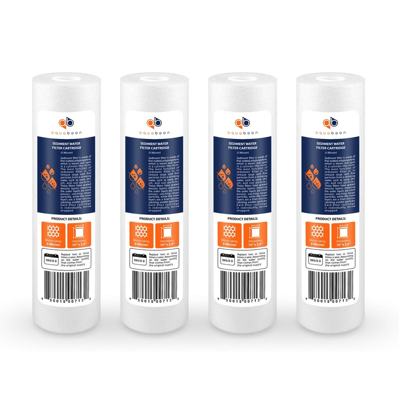Aquaboon 4-Pack of 5 Micron 10" Sediment Water Filter Replacement Cartridge for Any Standard RO Unit | Whole House Sediment Filtration | Compatible with DuPont WFPFC5002, Pentek DGD series, RFC