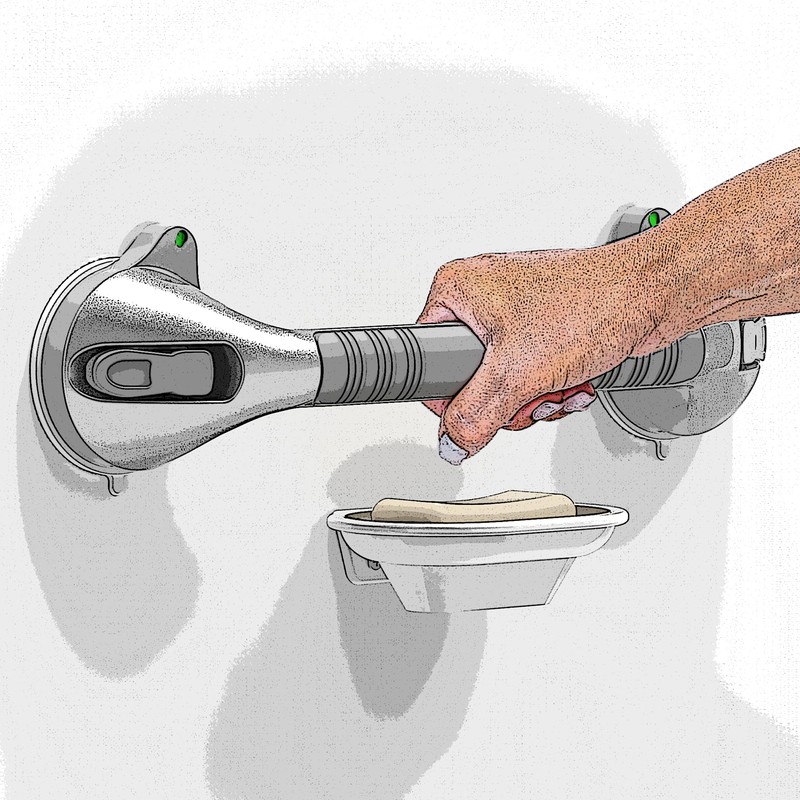 - 【EASY TO INSTALL】- No drilling to damage the wall, no tools required. Clean and dry the wall, flip down the easy release tabs to secure the shower grab bar in place. It can be easily removed to relocate. A portable safety device for travel and vistors.