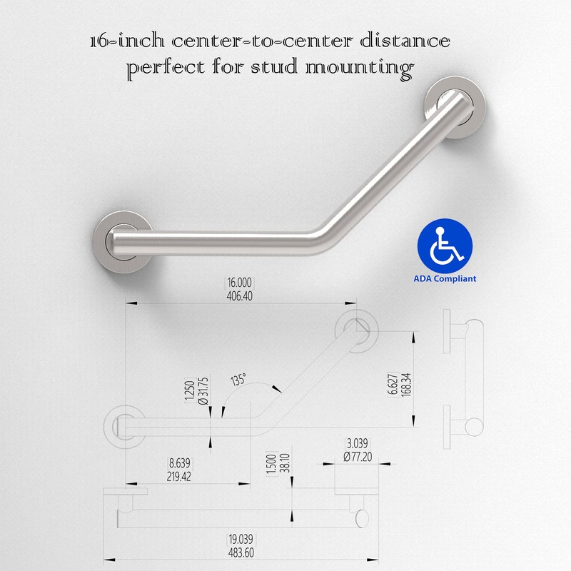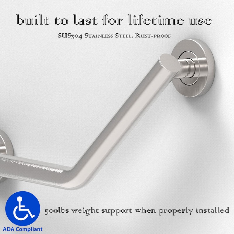 - · 500lbs Supoort - This bath safety grab bar is constructed of commercial grade SUS304 stainless steel. 1-1/4" stainless steel tubing with 1-1/2" clearance, it's ADA compliant.