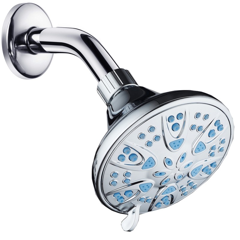 - LATEST STATE-OF-THE-ART FEATURES FROM TOP-BRAND MANUFACTURER. This shower head offers the ultimate combination of Premium Quality, High Power, Latest Design & Microban Protection! 6 settings: Power Rain, Pulsating Massage, Gentle Mist, Rain/Massage, Rain/Mist, Water-saving ON/OFF Pause Mode; Large 4" Face; New 3-zone Dial Design with Rub-clean Jets; Premium All-Chrome Finish. Includes Plumber's Tape & LIFETIME WARRANTY from manufacturer. EASY TOOL-FREE INSTALLATION