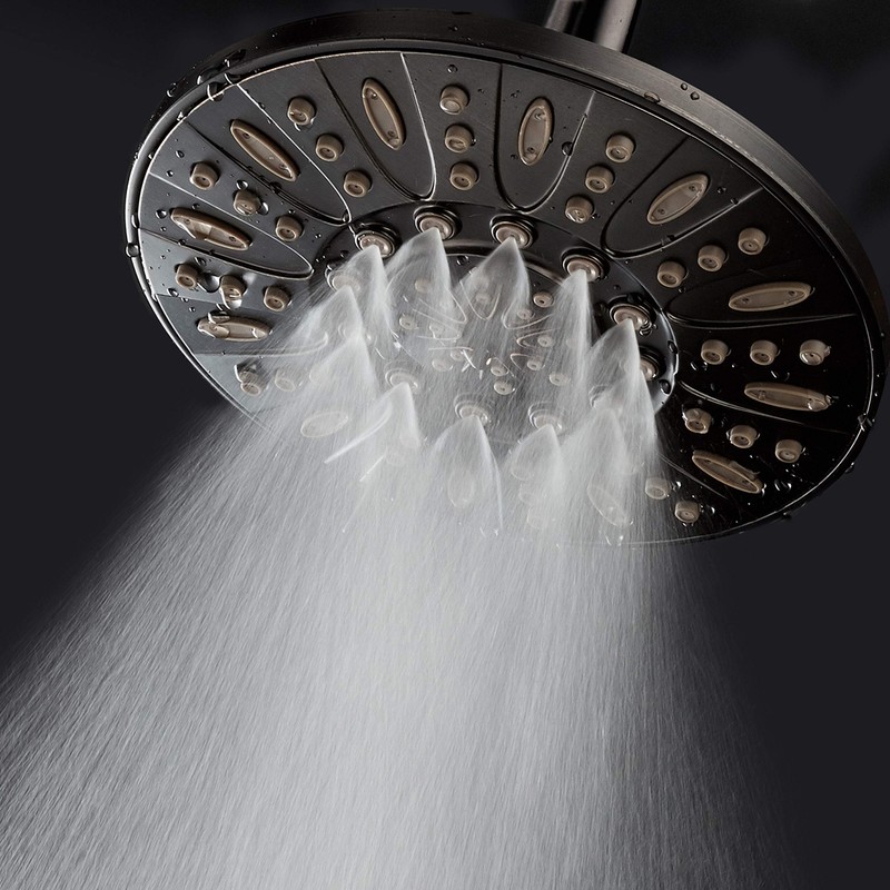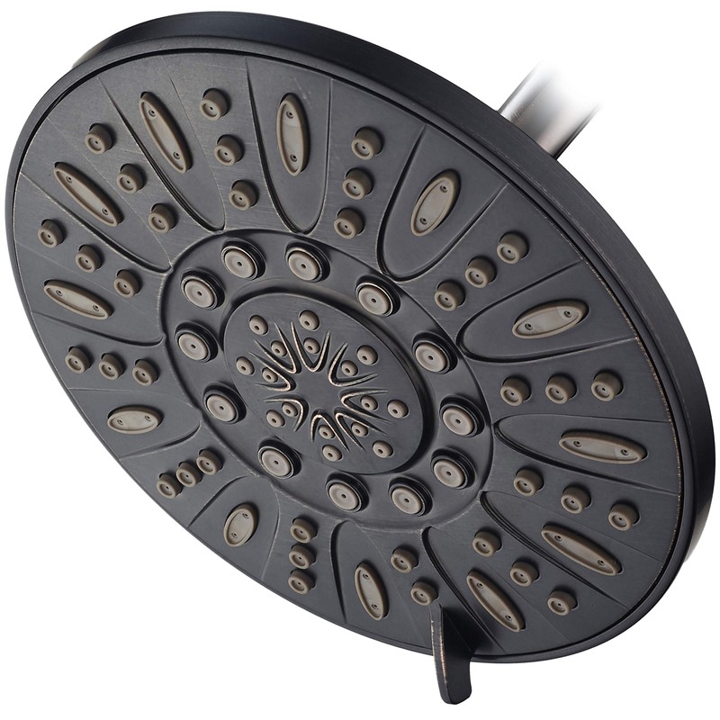 - DELUXE 7" RAIN SHOWER HEAD FEATURES: high-power click lever dial, rub-clean jets (for easy cleaning and preventing lime buildup), angle-adjustable modern design, luxurious all oil rubbed bronze finish including face. 6 SETTINGS: power rain, pulsating massage, power aeration, rain massage, aeration rain, water saving pause mode.