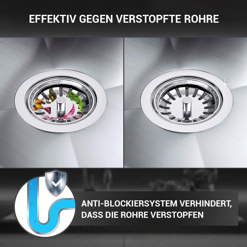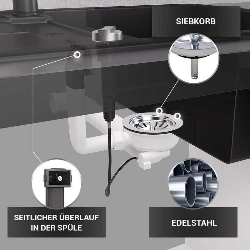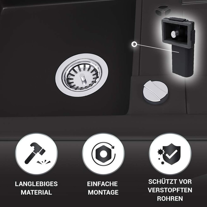 - Universal use: suitable for almost all sink types with approx. 1 cm material thickness (stainless steel sinks, granite sinks, plastic and ceramic sinks) from all manufacturers Blanco, Franke, Schock, Ikea etc.