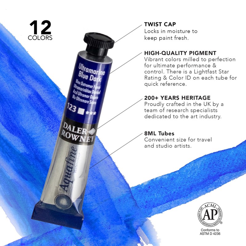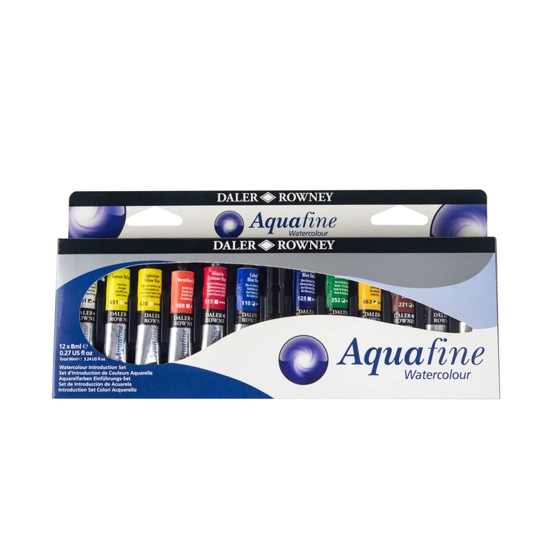 Aquafine Daler Rowney Watercolour Introduction Set-12 x 8 mL Tubes, Assorted