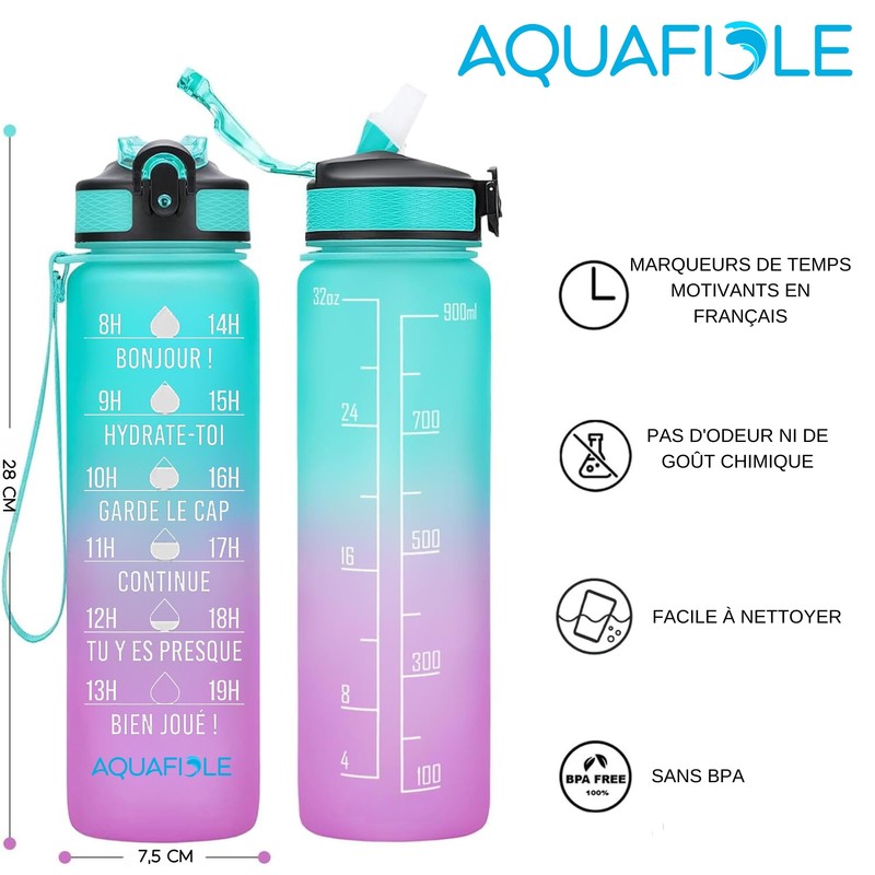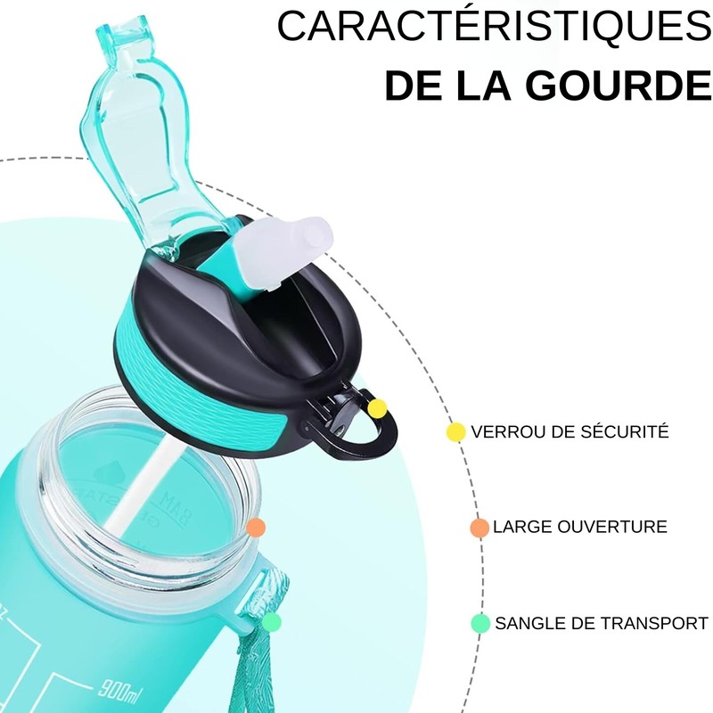 - Hydrate yourself! Discover our incredible motivational bottle! Thanks to its dimensions and inspirational words in French, our motivational water bottle will inspire you to drink more water and maintain optimal hydration throughout the day.