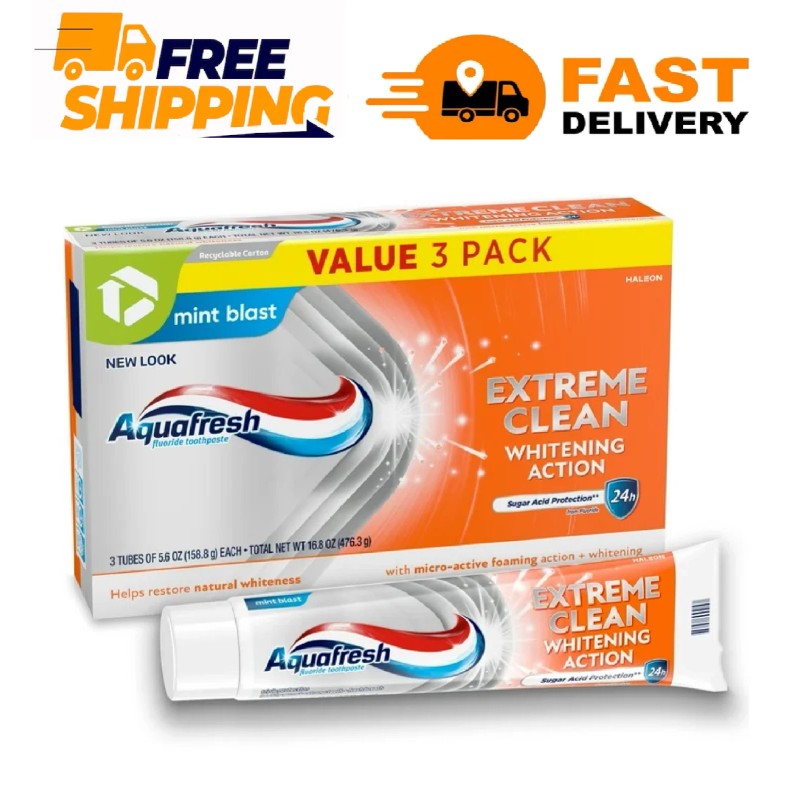 Aquafresh Extreme Clean Whitening Action Fluoride Toothpaste, 5.6 Oz, 3 Pack