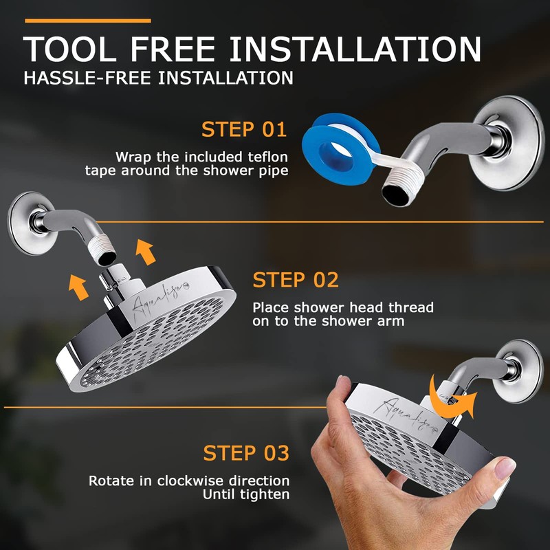 - Quick Installation: The pressure boosting shower head doesn’t require any special plumbing tools or expertise and can be installed easily within a few minutes. Follow the instruction in the manual that comes with the shower hose and connect it to any standard shower arm in no time. The Teflon tape to attach the removable shower head is included in the package.