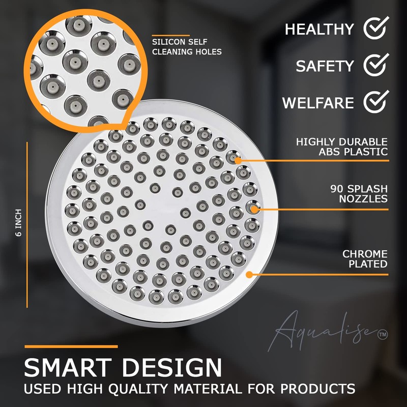 - Luxurious Experience: With 90 splash nozzles and high pressure rainfall effect, the rainfall shower head helps you to upgrade your shower experience. The brass swivel ball joint of the detachable shower head allows 360-degree rotation, enabling you to tilt the shower head in any direction. The broad chrome shower head of 6-inch diameter has enough area to give you a wide shower so that you can enjoy a refreshing bath.